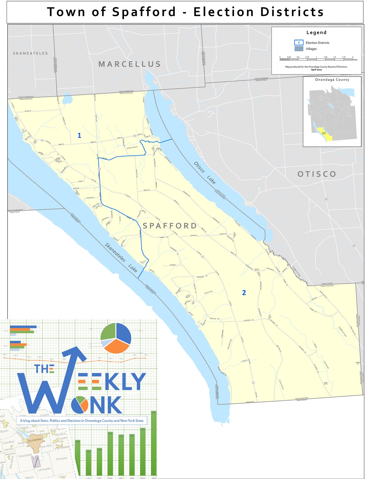 Welcome back to the #WeeklyWonk. Each weekend I release an article on a subject relating to elections in Onondaga County and New York State. Often these articles will have detailed stats to consume but sometimes they will be a recap of a prominent issue or on relevant election law. I am turning my eye to the 2023 elections. This week I take a break from looking at the political subdivisions and focus on a work item from the Onondaga County Board of elections. Today I look at the Town of Spafford, a surprisingly competitive small town.