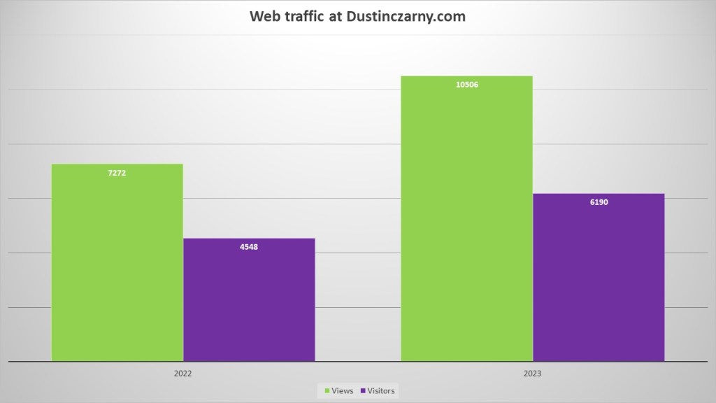 The last piece of data I am going to analyze is web traffic at dustinczarny.com. My goal in creating the website was simple, continue to provide content and hope it grows a little each year. In relative terms the reach of dustinczarny.com is small, but it did experience growth in it’s first year. In 2022 dustinczarny.com saw 7,272 views, and in 2023 it grew to 10,506 views. In terms of unique visitors there was growth as well, rising from 4,548 in 2022 to 6,190 in 2023. That is a rise of 44.47% in views and 36.10% in visitors. I am happy with this rise as 2023 was in general a less active political year and I look forward to what dustinczarny.com can do in a Presidential year.