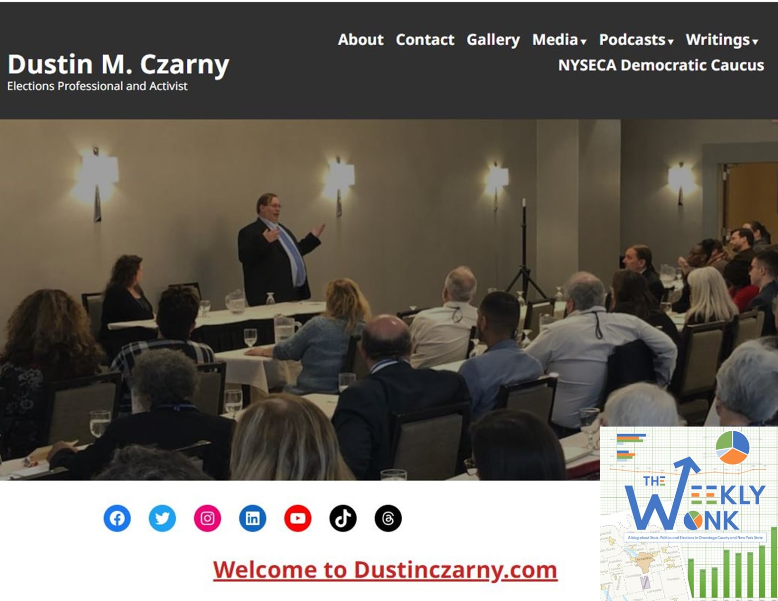 That is, it for the #weeklywonk this weekend. Starting next week, I am going to be changing up when I release the #weeklywonk and my other weekly content, Commissioner in a Car and Zoom with Czarny podcasts. I will be releasing my Commissioner in a Car on Monday evenings starting on FB live and moving onto my other platforms. #WeeklyWonks will be released on Wednesdays with next week’s look at the Fayetteville and Baldwinsville village elections. Finally Zoom with Czarny interviews will be released on Friday mornings. Meanwhile you can subscribe to dustinczarny.com to get all content and election news updates.