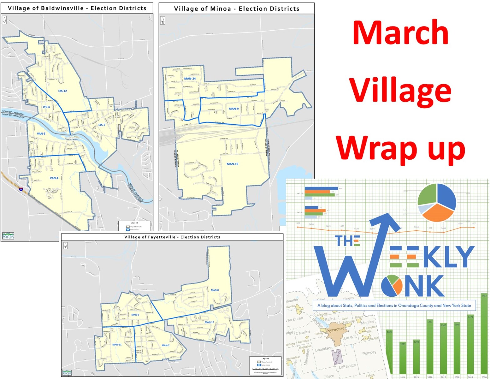 Welcome back to the #weeklywonk. The first few months of the year I have had some tough times getting back into my content schedule. However, as April dawns I am rededicating myself to my content, including this weekly write-up on electoral and registration data in Onondaga County and New York. Each week I will examine some data from a recent election or a political subdivision having a competitive election later this year. This week we wrap up the March 19yth village elections of Baldwinsville, Fayetteville, and Minoa.