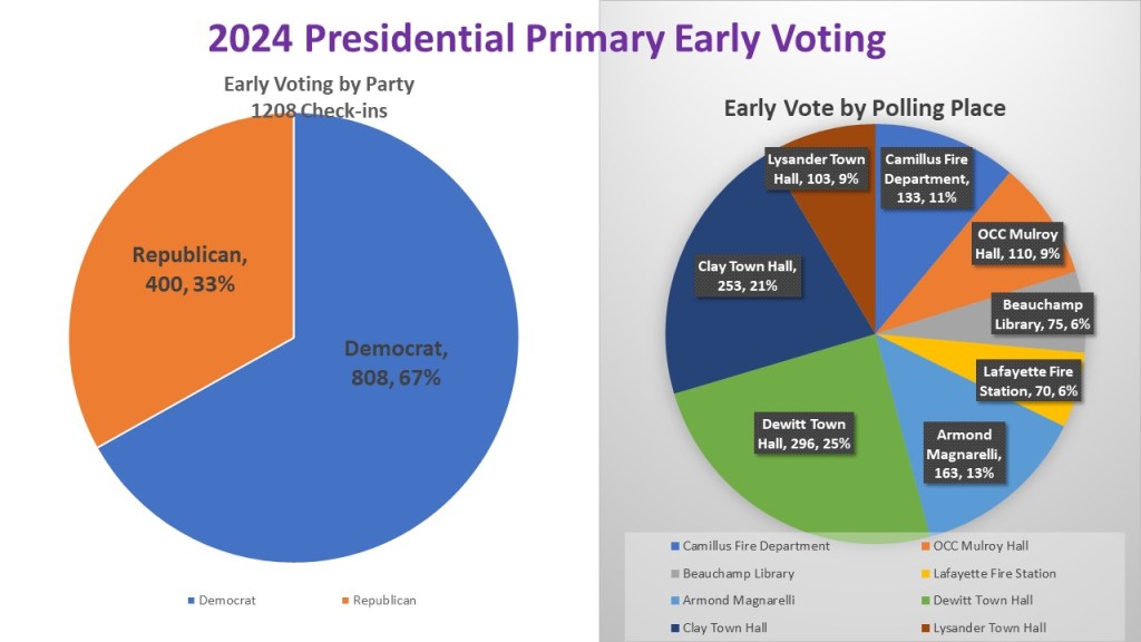 Welcome back to the #weeklywonk. Each week I investigate a political subdivision or election result here in Onondaag County and sometimes beyond. I analyze electoral and registration data to illuminate how voters are behaving and interacting with our Democracy. This week I start my two parts look back at the April 2nd Presidential Primary. I start off by looking at alternative voting methods, Early, Absentee, and Affidavits and how voters used these methods this last election.