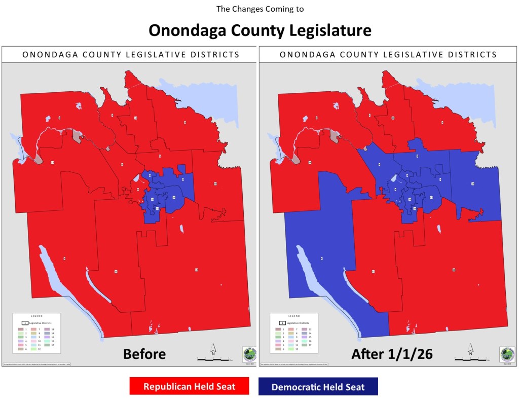 Onondaga County Legislature Democrats now control 10-7. This is in addition to holding county wide offices County Clerk, County Sheriff, and County Comptroller.