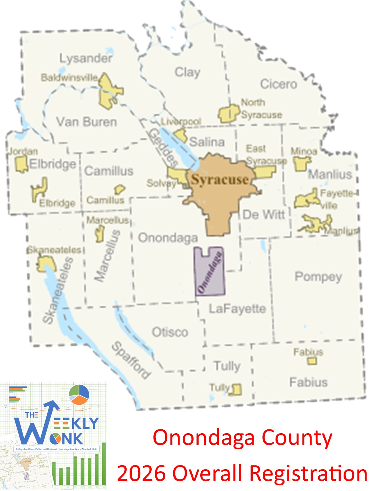 Happy New Year and welcome back to the #weeklywonk. One of my 2026 New year’s resolutions is to get back to this, my weekly look at registration electoral data in Onondaga County and New York State. I took a brief hiatus from this column in 2025 with just sporadic columns, but now in 2026 IContinue reading “The Weekly Wonk: Onondaga County Overall 2026”